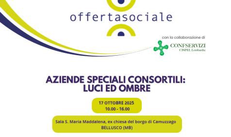 La nostra associata Offertasociale, con la collaborazione di Conservizi Lombardia, organizza un convegno sul tema ‘Aziende Speciali Consortili: luci ed ombre’.