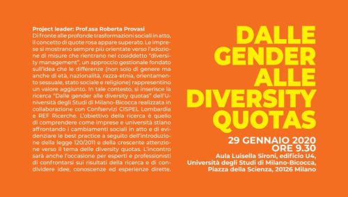 ‘Dalle Gender alle Diversity Quotas’. E’ il titolo del convegno l’interno del quale, mercoledì 29 gennaio, saranno presentati i risultati dell’omonima indagine condotta dall’Università degli Studi di Milano-Bicocca realizzata in collaborazione con Confservizi CISPEL Lombardia e REF Ricerche.