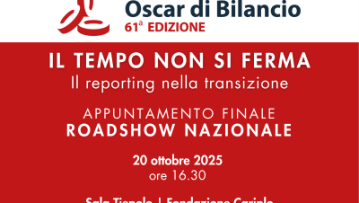20 ottobre 2025 ore 16.30 (accrediti), ore 17.00 (inizio evento) Sala Tiepolo, Fondazione Cariplo La presentazione dell’Oscar di Bilancio in Lombardia, ospitata a Milano da Fondazione Cariplo, avrà come focus la sostenibilità come azione di sistema, che prevede il contributo sinergico di Istituzioni pubbliche e mondo accademico, oltre che di… [...]