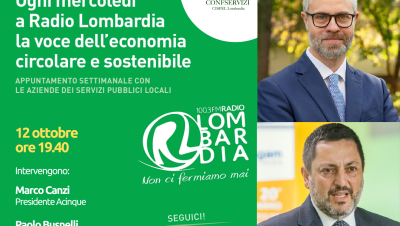 Torna ‘SERVIZI&SOCIETA’. La voce dell’economia circolare e sostenibile. L’appuntamento settimanale con le aziende dei servizi pubblici locali. Dopo il successo della prima edizione, dal 28 settembre, ogni mercoledì sera, dalle 19.40 alle 20.00 saremo di nuovo a Radio Lombardia, all’interno del format "Pane al pane" un talk di attualità, politica… [...]