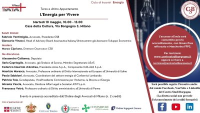 Ciclo di Incontri Energia ‘L’Energia per Vivere’ 3° Appuntamento, martedì 10 maggio ore 10.00 - 13.00 c/o Casa della Cultura, Milano Terzo ed ultimo appuntamento – martedì 10 maggio, dalle 10.00 alle 13.00, presso la Casa della Cultura, via Borgogna 3, Milano - con il Ciclo di incontri intitolato ‘La… [...]