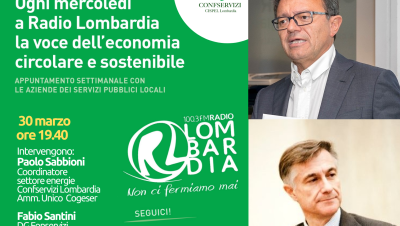 30 marzo, dalle 19.40 alle 20.00 a Radio Lombardia su FM 100.3 www.radiolombardia.it e Smart TV. Ogni mercoledì sera dal 23 marzo al 15 giugno, dalle 19.40 alle 20.00 saremo a Radio Lombardia con ‘Servizi&Società, la voce dell’economia circolare e sostenibile’. Appuntamento settimanale con le aziende dei servizi pubblici… [...]