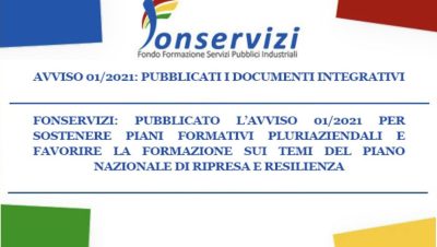 Segnaliamo che Fonservizi - Fondo Paritetico Interprofessionale Nazionale per la Formazione Continua nei Servizi Pubblici Industriali - ha di recente promosso l’Avviso n. 1/2021 che interesserà i fabbisogni formativi del 2022. All’avviso possono partecipare tutte le aziende aderenti al fondo presentando un Piano formativo finalizzato al consolidamento ed allo sviluppo dell’occupabilità e delle competenze… [...]
