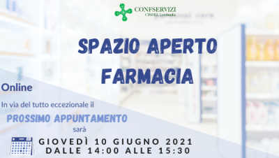18 Maggio 202110 giugno | Incontro mensile con Spazio Aperto Farmacia
